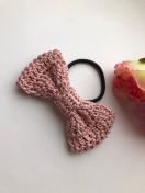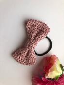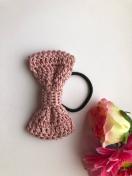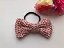 レース糸でリボンを編んで、ヘアゴムを作りました。
