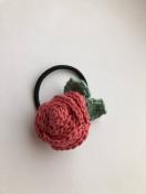 コットン糸で巻き巻き薔薇を編んで、ヘアゴムを作りました。