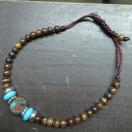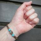 真鍮装飾ビーズとバッファローボーンビーズを合わせ、紐で編んでブレスレットに仕上げました。