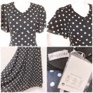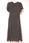 Vネックブラックホワイトドットミディアムフレアロングパフスリーブワンピース黒白blackWhite半袖