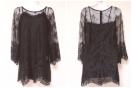 DRWCYSblackflowerドロシーズブラックフラワーレースシースルーキャミソールフレアワンピーススカラップ長袖黒花柄