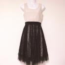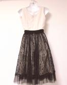 GRACECONTINENTALbeigeblackグレースコンチネンタルベージュブラックフラワードットレースギャザープリーツフレアチュールミディアムドレスワンピース黒
