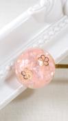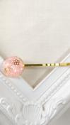 半球にゴールドの桜のパーツと舞い散る花びらをイメージして、ピンクのクラッシュシェルを閉じ込め、ヘアピンの台座につけました。