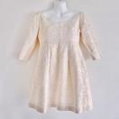 MERCURYDUOマーキュリーデュオオフホワイトゴールドフラワー花刺繍ジャガードタックプリーツパフスリーブフレアスーツドレスワンピースWhitegold金
