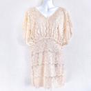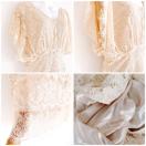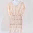 COCORIBBONbeigeヌーディーベージュドロップショルダーオフショルダーシースルーフレアタイトドレスワンピースVカットフラワー総レース花