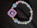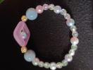淡いピンクとゴールド、淡いブルー、オーロラ真珠風ベースのビーズで仕上げました。