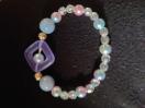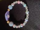 淡いブルー、ゴールド、オーロラ真珠風ベースのビーズで仕上げました。