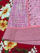 お花レースと黄色ピンクのツイード風部分、モスピンクのボア裾、とても可愛いデザインです☆