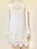 snidelWhiteflowerスカラップ刺繍レーススナイデルホワイト花柄フラワーシースルーチュニックミニコットンワンピースドレスキャミソールレイヤード水着袖コンシャス白