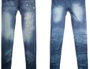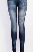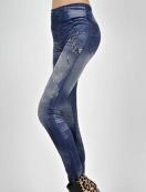 送料無料 蝶柄 カスレ デニム風 レギンスパンツ  ブルー