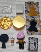 トットドール、服カバー、ハンガー2個、ブラシ、ハットボックス、シューズボックス、ボトル、説明書のセットです。