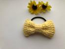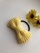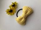 コットンミックス糸でリボンを編んでヘアゴムを作りました。