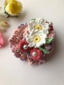 ハンドメイド ボリューム シュシュ マーガレットとぷっくり花