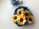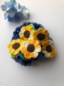 ブルーのコットン糸でボリューミーなシュシュを編みました。