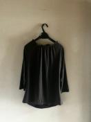 きちんと感はありながら着心地抜群で、生地は柔らかくストレッチ 抜群、ネックから前立てはギャザーが入り、着痩せ効果がとてもあります。