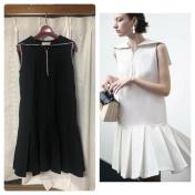 frayidblackWhiteフレイアイディーブラックホワイトメモリーフレアーワンピースドレス黒白艶光沢ハリ