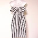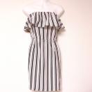 ISBITdaikanyamaアイズビット代官山白紺色赤ホワイトネイビーレッドトリコロールカラーストライプベアフリルタイトミディアムワンピースパイルコットン