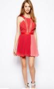 THREEFLOORスリーフロアインポート赤ピンクプリーツミニスカートドレスワンピースレースシースルーimportredpinkバックシャンVカット