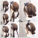 6,三つ編みの毛束をくるくる巻きつけてえりあし付近にピンで2箇所留める