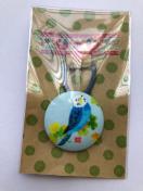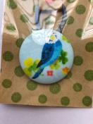 ブルーのかわいいインコちゃんをくるみボタンに閉じ込めました。