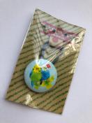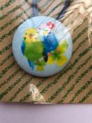 仲良しインコちゃんをくるみボタンに閉じ込めました。