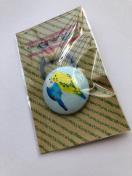 仲良しインコちゃんをくるみボタンに閉じ込めました。