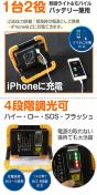 機能:4モード点灯、折り畳み可能、マグネット付き、スマホに充電対応、IP65防水、耐衝撃、バッテリー残量表示灯付き