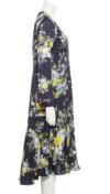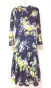 FRAYIDflowerバリエーションプリントワンピースフレイアイディーネイビーフラワーイエロー紺色黄色vカットフレアロングカーディガンロングカーデシースルー