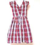 LIMITLESSLUXURYリミットレスラグジュアリーフレンチチェックフリルギャザープリーツフレアミニワンピースネイビーホワイトレッド紺白赤背中Vカット