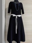 より黒い上質なブラックと襟ぐりとウエストのホワイトが、バイカラーのアクセントになり大変ステキです。