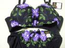 ブラック素材にパープルの花柄刺繍を大きめにデザイン、ストラップの幅も広く取りはずし可能、取りはずしパッドは付いておりません、パッドポケットも有りませんが弾力あるカップとサイドボンが高めの作り、ホックは3段三列、サイドからバックはメッシュ仕様で風通しが良いデザイン、素材 ポリエステル ナイロン ポリウレタン、その他 サイズ アンダーバスト70 バスト85 ヒップ97〜95 新品でお届けいたします。男性の入札も歓迎いたします。締切日時