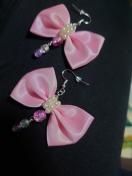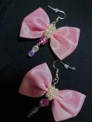 ピンクリボンと、ピンク、透明、紫ビーズで仕上げてます。
