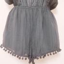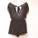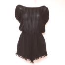 FOREVER21blackブラックポンポンサロペットオールインワンショートパンツワンピースリゾートワンショルダーボートネックオフショルダーリボンフォーエバー21水着黒