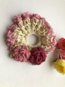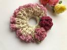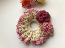コットン糸でフリフリシュシュを編みました。ハマナカの変わり糸二本取りでフリルを付けました。