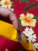 ゴムをボタンに引っ掛けて止めるデザインです☆