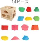 14×14×12cmです。幾何学形状のブロック13ピースと形あわせボックス1つが含まれています。形と本体の差し込み口の色を合わせます。遊びながら脳の発達を促すことができる知育玩具です。(ブロックの色はランダムです。)
