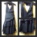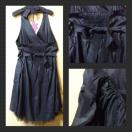 サイドファスナー開閉。後ろシャーリング加工。タグには、バスト84-100cm、ウエスト80-88cmに対応とあります。