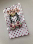 コットン生地でくるみボタンのヘアゴムを作りました。