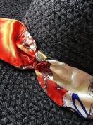 赤いモダンなサテンリボンバンダナとラメエスニックレース。