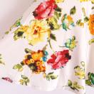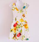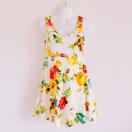 オフホワイトクリームレッドオレンジイエローブルーぼかしフラワーフレアミニワンピース白赤黄色青花ノースリーブ