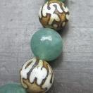 *8ミリ玉 貝製 観音真言細工ビーズ…観音真言がデザインされた貝ビーズです。