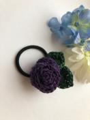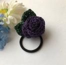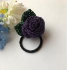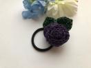 レース糸で巻き巻き薔薇を編んで、ヘアゴムを作りました。