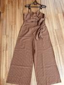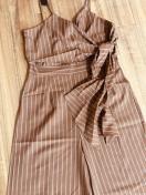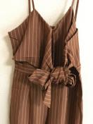 ボーダー柄で前部分リボンすそ幅広オールインワンです。