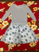 5部袖のニットに花柄のシフォンスカートの一体式ワンピース☆
