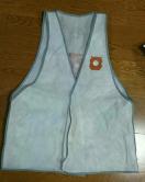 不織布でできた白い安全ベスト 後ろ見頃に大きなフクロウのイラストが、闇夜で後ろからくる車などにもライトで照らされ気づいてもらいやすいので、交通事故防止に。