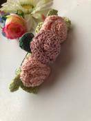 レース糸で巻き巻き薔薇を編んで、バレッタに仕上げました。