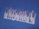 ネイビーのボディにシンプルなフレア調のグラフィックプリントが胸に入ります。後ろは無地です。