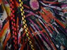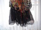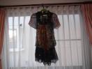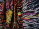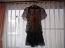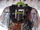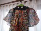 フランス製だと思います。サイズはT1となっております。調べたところT1はフランスサイズでSに相当するそうですが、実際にはフランス人にSと日本人のSでは、随分と差があるようです。なので、Mでも入ると思われます。素材はシルク100%です。おしゃれな柄でなかなかいい感じです。着丈77、肩幅42、身幅52、袖丈20センチ