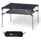 「傷つきにくい天板」このテーブルはヤスリがけをされて、傷や汚れがつきにくいです。 厚めのアルミ合金天板、30kgの耐荷重が実現しています。