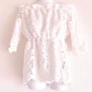 CHILLEanap2wayWhiteオフショルダーリーフチュニックトップスシースルーリゾート白七分袖